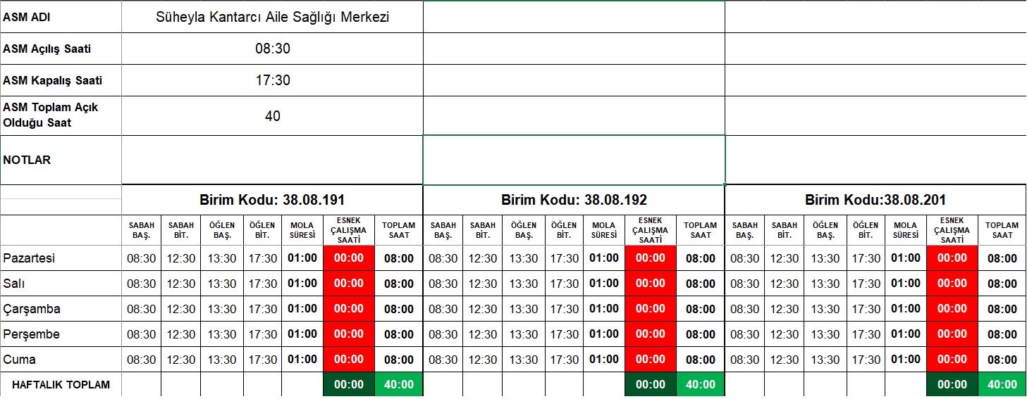 Çalışma Saatlerimiz